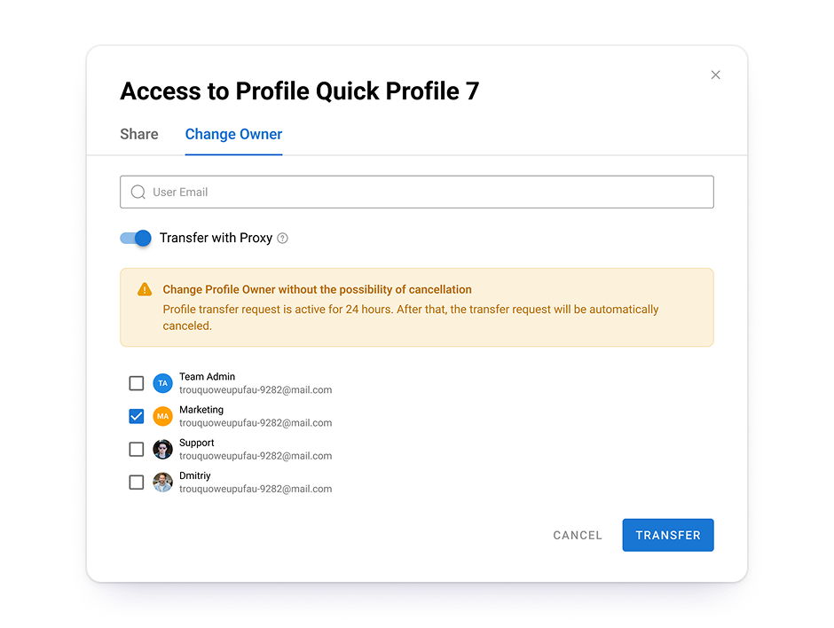 Share profiles, proxies, and cookies with your team